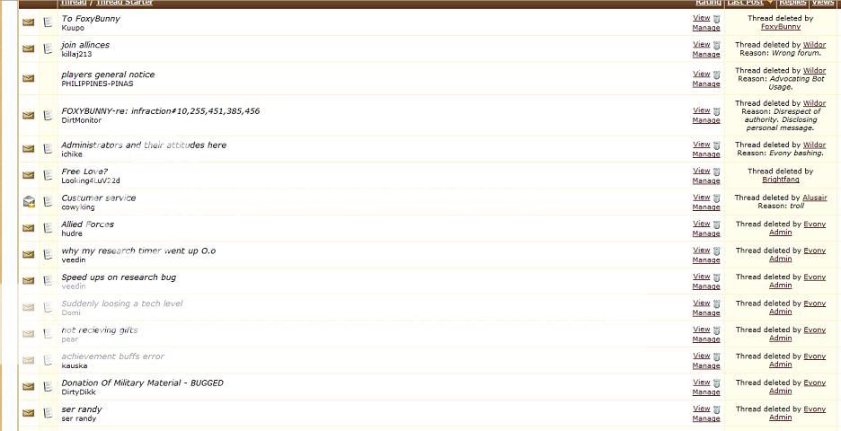 You are currently squelching awareness of major bugs in the game. You may think that will help you keep customers who couldn't handle the truth. That might even work if these errors weren't apparent in game play and discussed in alliance chat. Stop it. Fix the system rather than hiding behind it. The fact that you are denying things is far more offputting than the actual bugs. Seriously, a few moments of contemplation should demonstrate how counterproductive your current policies are.