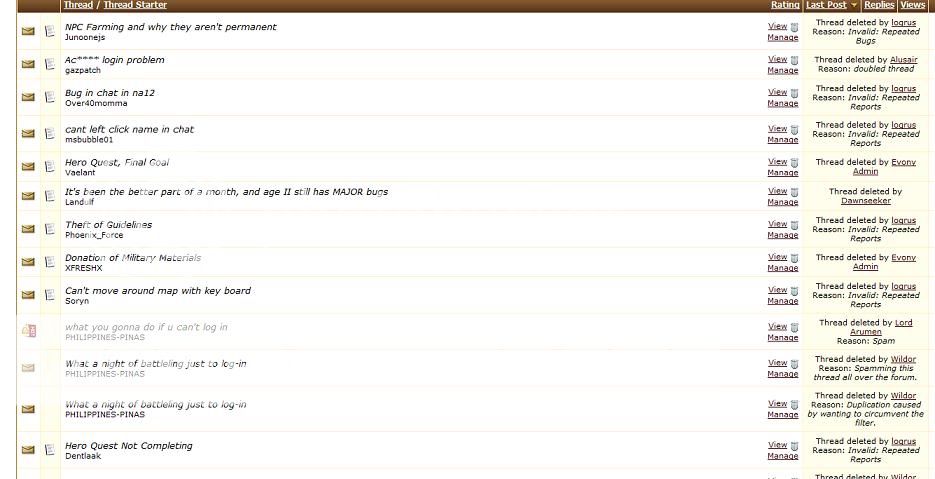We stopped posting and emailing bugs a long time ago. It may have something to do with moderators who don't allow valid bugs to be posted in the threads. We also know that the serious issues exist as of this moment in Age II. Issues that undermine the integrity and interest in the game like: