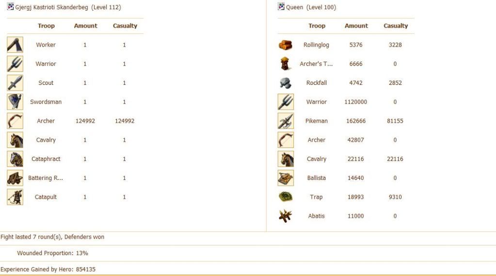 Balllista Loss: 70k ( lol but got back 12000, it is dumb of me to mess up by not sending it with my strongest hero)