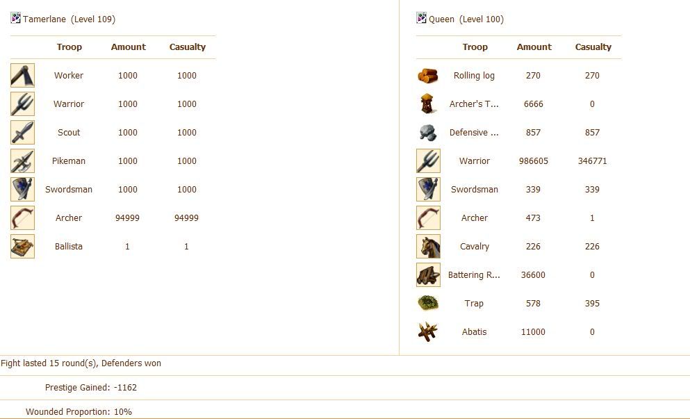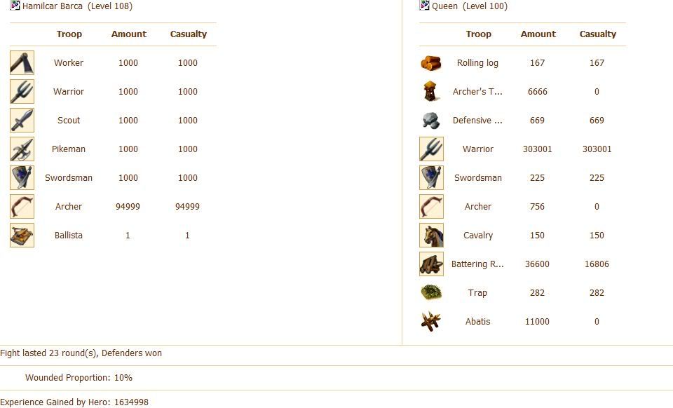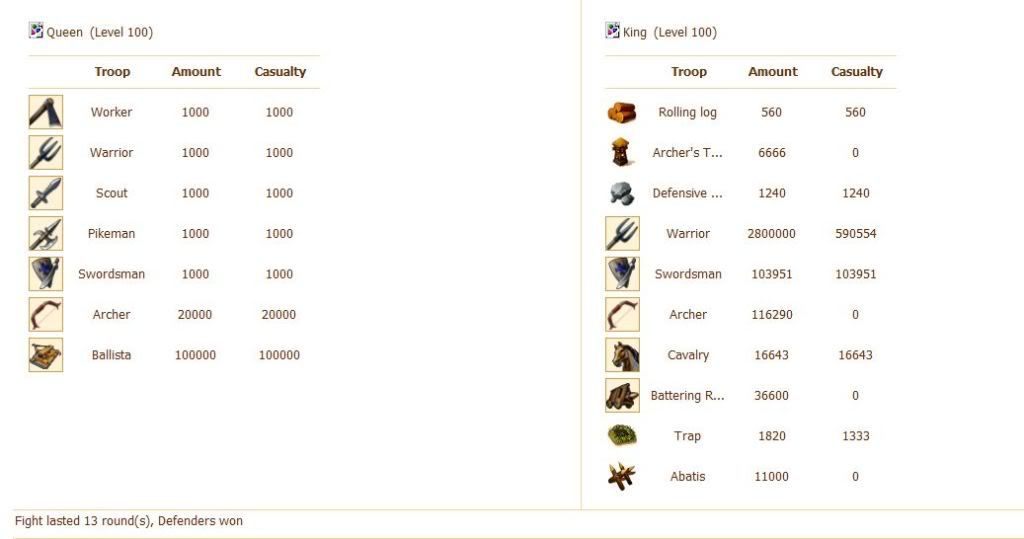 that why they never post or just dont to share. But who care, as long as the city is captured, it good enough. So, it better to lost those 2mil archer and 174k ballista and have the city than havent nothing hahah.