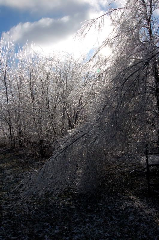 Here are two images, that I took during our last ice storm for art class. I hope you like them. I will post some of my drawings when I find them. Mostly they are in my art binder, but that stuff is currently in storage, and by that I mean stuffed in a box in the basement of the house that I own and rent out.